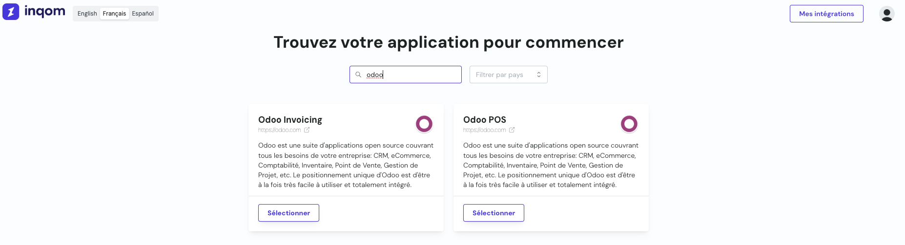 Cliquez sur le bouton "Sélectionner" pour sélectionner le connecteur désiré (exemple ici avec Odoo).