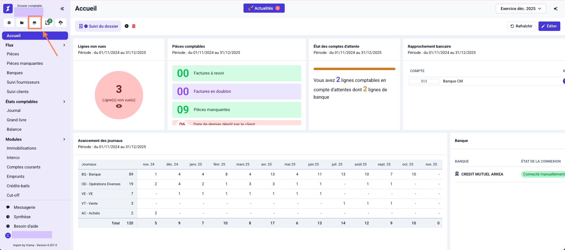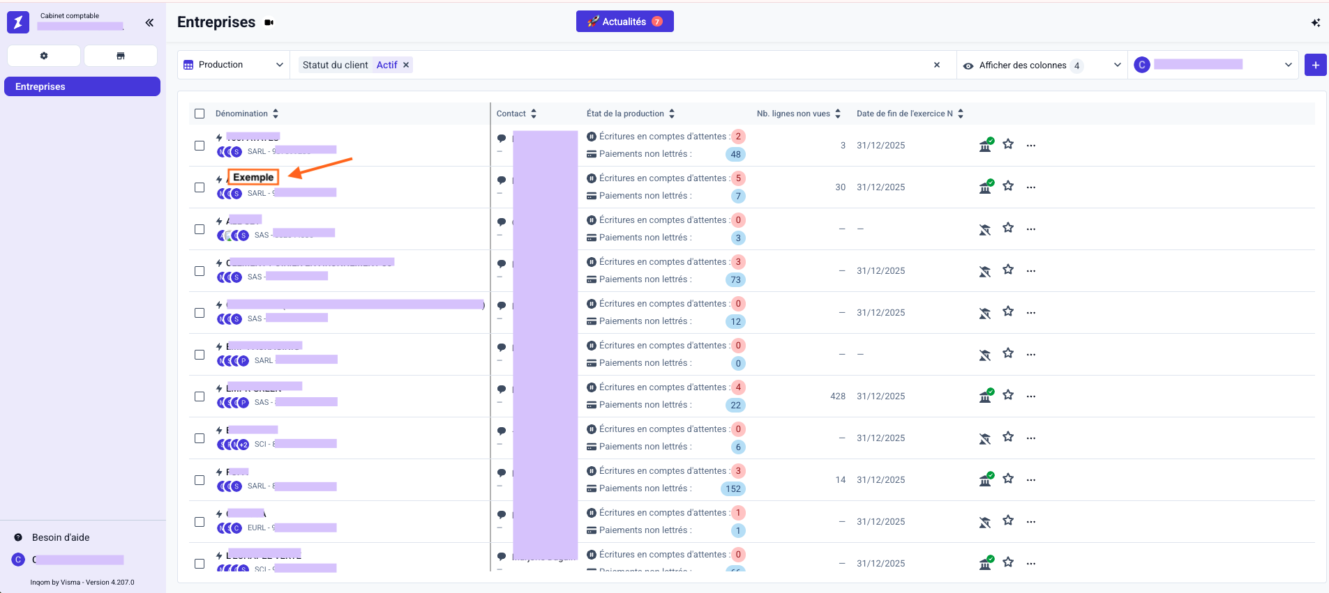 Depuis la page d’accueil Inqom, sélectionnez le client / dossier sur lequel le connecteur Chift doit être installé et cliquez-dessus :