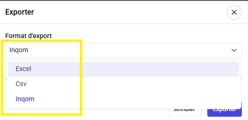 Vous pouvez maintenant exporter facilement la liste de toutes vos immobilisations depuis Inqom. Que ce soit pour vos analyses, vos reportings ou pour partager les données avec vos équipes, vous avez le choix entre plusieurs formats :