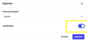 Pour aller plus loin, vous pouvez activer le toggle “Analytique” avant l’export. Cette option vous permet de ventiler vos immobilisations selon vos axes et tags, par exemple par service, projet ou centre de coût. Cela facilite la lecture détaillée et le pilotage précis de vos immobilisations.