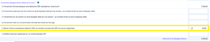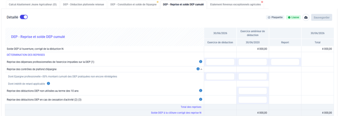 ⚠️ Une alerte apparaît car l’épargne dépasse 100 % des DEP non réintégrées.