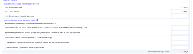 Cet onglet permet de recenser tous les mouvements d’épargne réalisés pendant l’exercice.