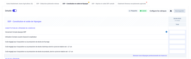 Cet onglet permet de gérer les dotations et reprises de DEP :