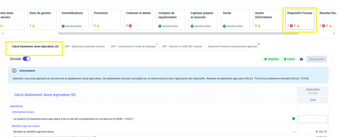 Gérez vos dispositifs fiscaux agricoles dans Inqom : abattement jeunes agriculteurs, DEP et REA, et optimisez votre imposition dans l’APEF.