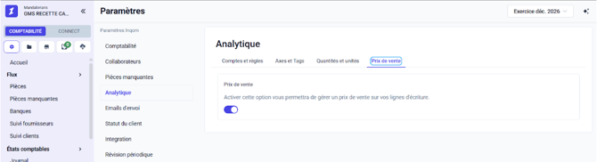 1. Activation du suivi analytique et du prix de vente