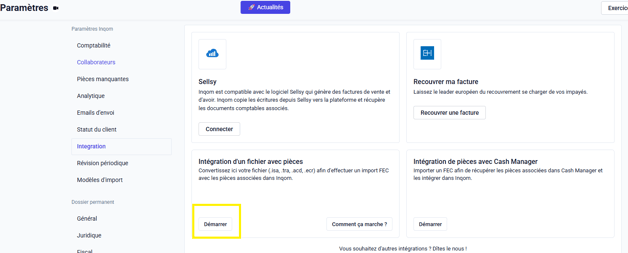 - Rendez-vous dans paramètres du dossier → Intégration