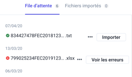 Si l'icône du fichier est en rouge, corrigez le fichier selon les erreurs décrites dans Voir les erreurs. Cette étape permet d’harmoniser vos fichiers avec notre base de données.