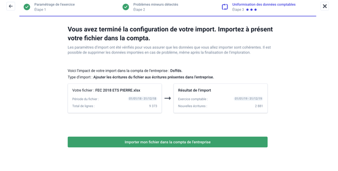 Finalisez l'import du fichier dans la comptabilité de votre client