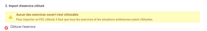 💡Si votre exercice est protégé, si l'exercice précédent n'est pas clôturé, ou si l'exercice suivant n'est pas créé, un avertissement peut s'afficher.Vous devrez corriger le problème pour accéder à cette option.