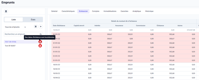 - Quel emprunt est concerné via un avertissement dans la liste des emprunts ?