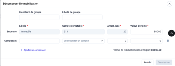 Cliquez sur le "+" dans l’onglet général de la fiche d’immobilisation et saisissez les informations suivantes :