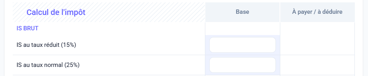 L’avertissement sur la réintégration de l’IS pour un déficit a été supprimé afin d’éviter toute confusion : si le résultat fiscal est déficitaire, il n’y a pas d’IS à payer.