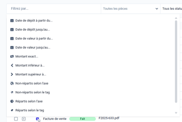 Les filtres analytiques du journal et du grand livre sont désormais disponibles directement dans l’onglet pièces.