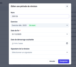Vous pouvez désormais adapter la date de fin d’une révision pour qu’elle corresponde à la fin de l’exercice.