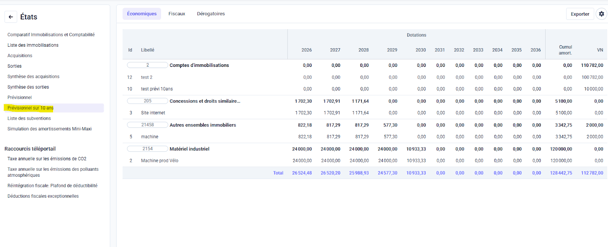 Visualisez vos immobilisations sur 10 ans pour anticiper vos investissements et mieux piloter votre stratégie.