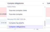 Un filtre “comptes obligatoires” est disponible dans la balance, pour vous permettre d’identifier rapidement les comptes à traiter selon la nouvelle réglementation et simplifier la gestion de vos transferts des comptes au quotidien.