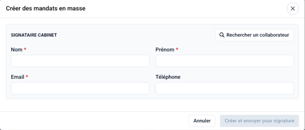 - Renseignez le signataire du cabinet (nom, prénom et email)