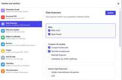 Dans la section “états financiers”, vous pouvez maintenant sélectionner plusieurs états en une seule fois pour les ajouter à la plaquette. Cette fonctionnalité est aussi disponible dans la section “état des modules”.