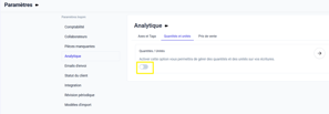 - Rendez-vous dans Paramètres > Analytique et activez l’option quantités / unités.