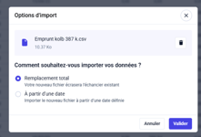 Lors de l’import d’un échéancier (CSV ou PDF), vous pouvez désormais :